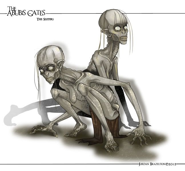 We had free reign on what we wanted to do, so I picked a scene and the characters in it to design. Jacky, one of the main characters, is an aristocratic woman who cross-dresses as a beggar boy to try and find her husband's murderer. At one point, she's thrown in an underground tunnel, where two "creatures" reside. These creatures were once human, but were experimented on and left in the dark. So I figured they'd be pretty creepy and... unhealthy looking.
